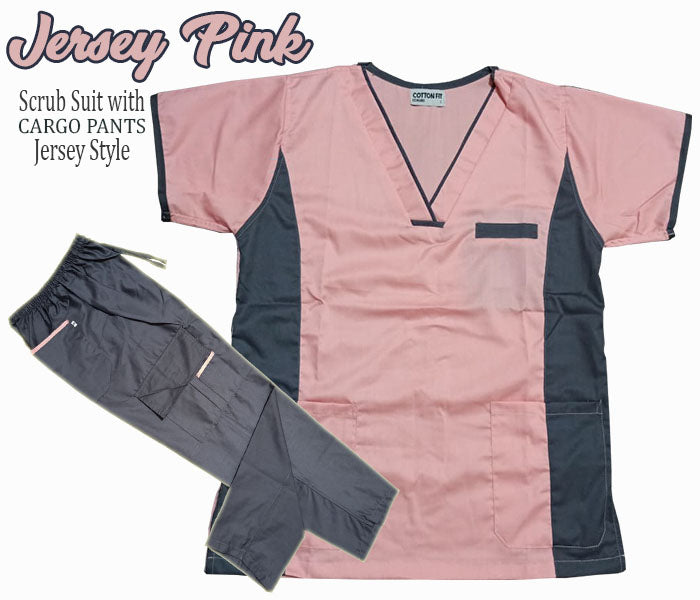 Jersey Scrub Suit Top with Cargo Pants (Carnation Pink)