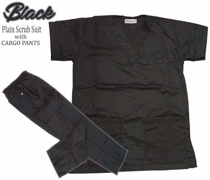 Plain Scrub Suit Top & Cargo Pants Set (Black)