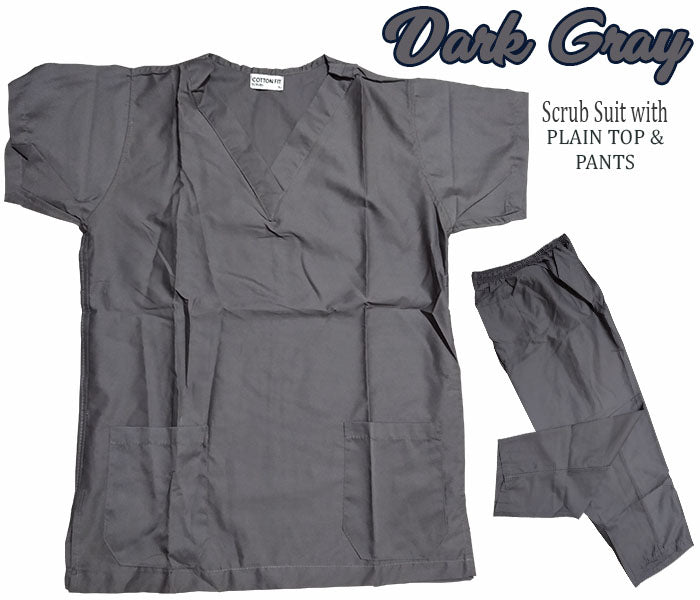 Plain Scrub Suit Top & Pants Set (Dark Gray)